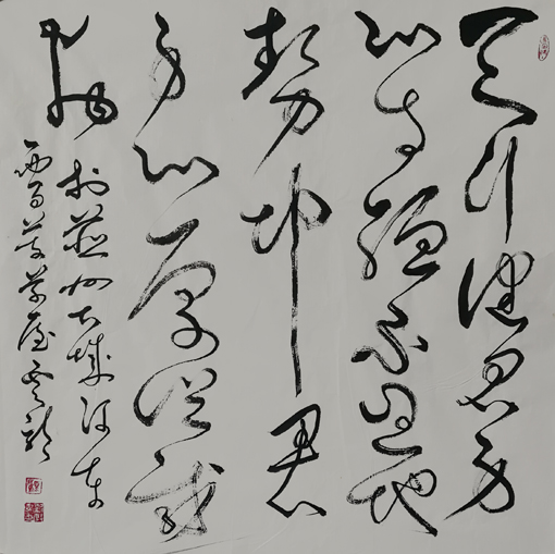 顾新敏作品 陈毅的诗:《大雪压青松,青松挺且直。要知松高洁,待到雪化时》。规格:85cm×85cm