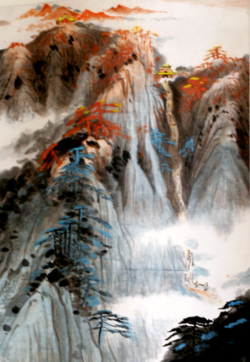 顾新敏作品 国画 《华山天下险》规格: 131cm×66cm