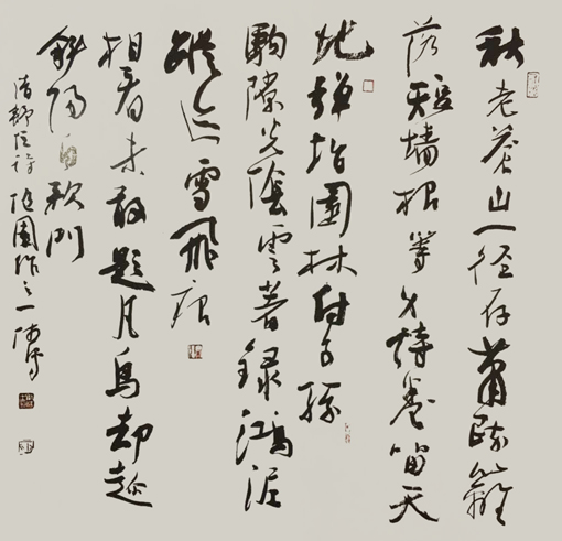 他抒情,怀抱散逸。“放歌弹铗空搔首,秋水长天一鹜飞”,“秋晴不比春晴减,诗意兼融画意新”,“白首方知身是客,青山不解富和贫”,此非师传者其谁?
