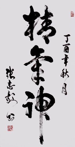 同年6月应中国文化信息协会之邀,有二十多幅书法作品入编,由全国著名艺术家欧阳中石、刘文西和本人(张志毅)三人合编出版了《笔墨神州、艺坛圣手》书画合集一书,并很荣幸的受邀由本人为该书题写了书名。