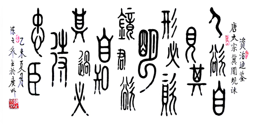 篆书《唐太宗冀闻规谏》规格: 50x100cm释文:人欲自见其形必资其镜,君欲自知过必待忠臣。