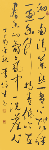 李俊生作品草书《沏一壶清茶,点一盏心灯,伴一窗幽竹,持卷低吟,在书香的氤氲中一洗尘心》规格:90cmx33cm1