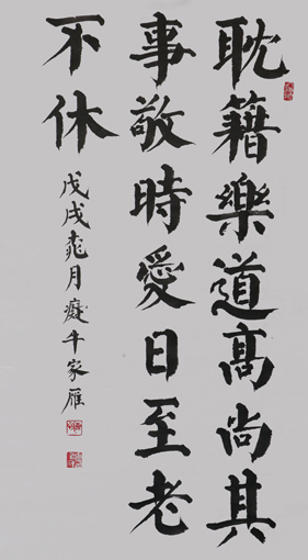 如今的张家雁已逾耄耋之年,但对书法艺术怀有的一份承传以及弘扬之责任心让他还继续不懈于孜孜以求之研索精神。相信,他的执着能作为当今书坛后起之秀的楷模,而其平和淡然的心境更能让其书法艺术臻达更为致远之出尘造诣!