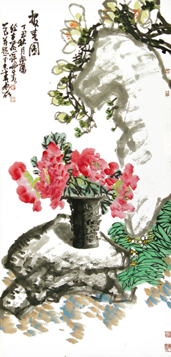 林心传,生于1924年,浙江慈城人。字维诚,号新泉。晚年自号岱翁、月洞山人、祈梦楼主人。早年毕业于上海复旦大学,1938年成为海门王个簃先生的入室弟子、艺术大师吴昌硕的第三代传人。擅画写意花卉蔬果,偶尔画佛道、古典人物。书法以行楷为主,先后研习米芾、赵之谦、吴昌硕,并受魏碑影响。曾多次参加国内外书画大展。作品被毛主席纪念堂、天安门城楼等京、沪一些重要单位收藏,并被刊载于国内外出版的书画刊物。传略收入于《中国书画名家大师画典》、《中国名花名家艺术大观》、《中国当代书画艺术家传世名典》等。现为中国收藏艺术家协会艺术指导、京华印社顾问、中国书画艺术学院教授、陈少梅艺术研究会总顾问。其绘画艺术具有“吴派”遒劲厚重、气势磅礴的风格,在继承传统的基础上有创新,力求体现新时代精神面貌,并具有灵动洒脱的个人风格与特色。