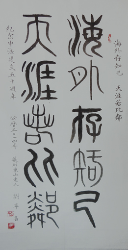 刘平1931年11月生,江苏省苏州人,五岁随父学书,临池十年。1947年7月参加革命,1948年7月入党,在部队曾荣获“解放奖章”、“淮海战役”、“渡江战役”纪念章等。1979年转业回苏州担任学校(大专)党政领导并兼课(职称大学讲师)。1992年离休后,继续学习和从事书法活动,曾在全国各类大展赛中获各种奖励一百多次(大部份为金奖、特等、一等奖)。2000年曾代表苏州市参加全国“夕阳红书画现场创作大赛”(全国文联在杭州举办)获金杯奖。2005年被江苏省国画院书法研究院聘为“特聘书法家”;2007年被聘为“中国名人书法家协会院士”;评为“中国书画家协会(香港)一级美术师”;2008年聘为“世界文化艺术研究中心理事”等;并相继被聘为“中华书画学会副主席”、“中国艺术名家研究院常务理事荣誉院士”、“中国翰林书画艺术院副院长”、“宋庄国际书画院终身院长”、“全国文化发展研究院院士”、“中国文化学会艺术委员会主席”、“中国书画名家研究会主席团成员”且被聘为英国皇家艺术研究院荣誉院士、客座教授等。并荣获“爱国爱军优秀艺术家”、“中国文明之星”、“中国名人艺术家”、“世界和平艺术家”、“2001-2010中国百位金典艺术家”、“推动中国社会进步突出贡献人物”、“感动中国文化人物”、“和谐社会建设突出贡献人物”当选为“二十一世纪全球华人最具影响力艺术家”先进事迹被载入《共和国功勋人物志》全国德艺双馨劳动英雄等,并荣获苏州市“优秀老干部党员”、“四好老干部”等荣誉称号。出版的作品集有个人选集《大家名家》、双人集有《当代艺神》、《中印艺术大家》,合集有《书坛巨擘》、《一代翘楚》、《中国辉煌》、《中华文化艺术巨匠》、《日出东方》、《文化强国》、《盛世翰墨名家经典》(国礼卷)等。