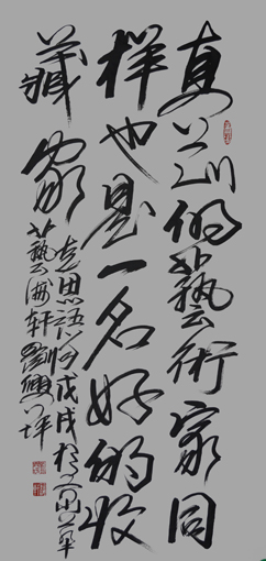 痴迷收藏,受陆俨少,李可染、林散之、武中奇等人影响,潜心书画、总结自研了悟、灵、神、气、德、敢、傲、苦、挑、真十字功法。现专门从事榜书研究、书法创作;善于发现、改正问题,创造语句、警句、格言、撰联,精鉴赏。他是二十一世纪的思想家、哲学家、教育家、创造者。