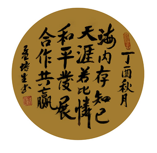 孟培生作品3《海内存知己,天涯若比邻。和平发展,合作共赢。》