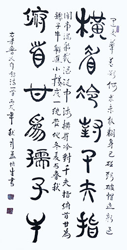 书法作品多以自作诗联为载体,多次入选国内外大型书法展,赛,获等级奖多项,入编优秀典籍多部。获奖作品被有关部、院、馆收藏。