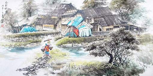 2015年9月国画作品(村落)在全国计划生育第二届书画大展中获优秀奖!
