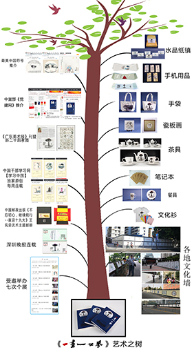他开创的深圳市一画一世界文化发展有限公司,是以创新、创意为宗旨,把他创作的哲理水墨画作品,创研出瓷器、文化墙等系列衍生艺术品,供应社会,是公益型创意、创新文化公司,引领时代新风向。