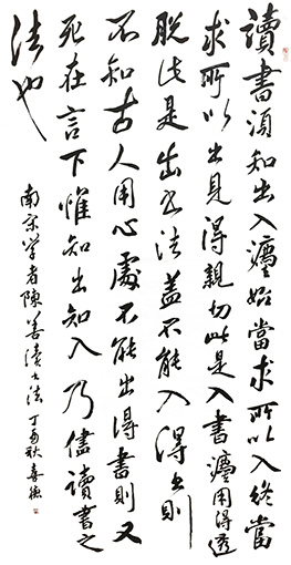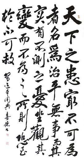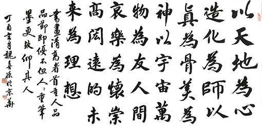 自幼学习书法,几十年奠定了一定的书法功底,特别在西南大学书法研究所的三年进修学习期间,师从西南大学书法博士生导师曹建先生,在张一农、崔树强、张兴成老师的指导下,进一步深化了书法理论和书法技艺。遍临历代名家碑帖,广采各家之长,熔铸汉隶和晋唐楷书的特点,形成了自己的书写风格。从事书法教学工作,做到了教学相长,与学子们共进步。