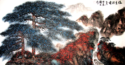 观其作品第一感觉就是绚丽多彩,彩墨交融。在浓重而亮丽的色彩下,古朴厚重的传统墨色之风隐约其中,让人在受到“重色”的强烈冲击下,感受到东方水墨的传统写意。任静光先生的画中还能体现蓬勃的张力,即使不用墨色绘出的山也显得沉稳大气,而自然的颜色在他的笔下更是被浓彩所表达,通过不同以往的笔墨,用多变的画面颜色来展示山水,赋予了山水一种别样的情感,达到了不同以往的艺术效果。期待任静光先生创作出更多的佳作,勇攀艺术之峰!