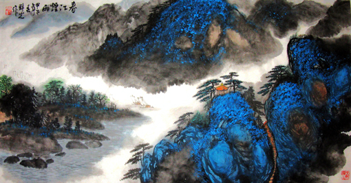 任静光先生的山水画,无论从造型、技法还是画面气韵均变化多样,既灿烂明艳,又温蕴俊秀,块勾其形,色彰雅意,处处契合。尤其是其远景之处理,以冲虚渐淡之写意,既彰显山之灵秀,天之高远;又烘托近景之秀,使画图立即充盈出灵动清新的烟火气息,给人一种气象万千的感受。他以浓墨重彩的方式将山水的精气神表现得淋漓尽致。细细观来,画中的山似山非山,画中的水似水非水,但观者可以感受到山的壮丽,水的绝美。