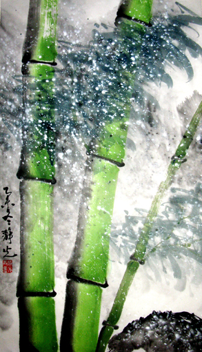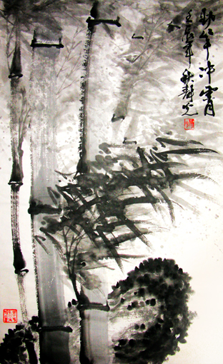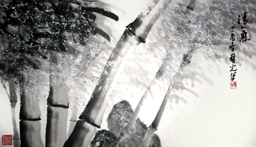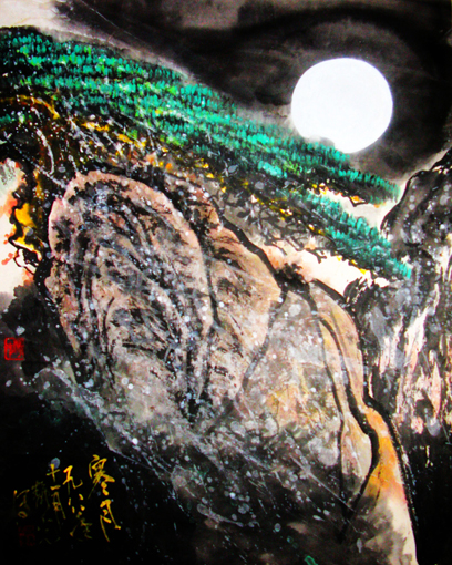 解读任静光的画作,探寻其从艺历程,我不仅为其在丹青之路上的一处处亮点所激励,更为其执著追求艺术真谛的精神所感动。任静光始终坚持在现实生活中孕育自己的艺术,他以“读万卷书,行万里路”的精神,以“外师造化,中得心源”的创作态度,跋涉在大自然的旅途上,吮吸着沃土中的文化乳汁,在此基础上,他感受着现实生活,品尝着艺术与人生之况味。在对艺术的追求上,特立独行,不畏寂寞。正是因为他全然地贴近并感悟于自然,胸怀山水,才深谙山川风物的精妙,所以他笔下的画作笔墨苍劲、造型浑厚、设色清雅、画面静谧。他的作品既有精致细腻的笔墨,又有超越物象的空灵飘逸,酣畅淋漓的线条与飞扬恣肆的笔法,巧妙地构筑着笔端的虚实、浓淡、轻重,呈现给人们一种安逸、净雅、空灵的意境。