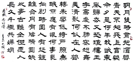 大珂,本名李俊奇,别署墨奇,网名,莫名其妙,道号云水斋主人。(1947年12.12)丁亥年葭月生。西安市人,大专文化,中国当代杰出实力派书画名家,资深广告人。自幼酷爱书画,无家承师授。凭着执著毅力和恒心,在坎坷人生中,依托广告宣传平台,数十年间在书山画海中奋攀搏击,软硬双飞。以古为师,以人为师,上追下逮,远学近取,走得进,出得来。研习书画,根植传统、积厚薄发、努力创新,尤其中年之后得邕行楷之法,使其书品大气磅礴,雄强遒逸,潇洒灵动,气象万千,极具阳刚之艺术魅力,凭借自己人格德行、豪谦敦厚、善行修为,学识专注和精湛技艺、志在书画相辅,走雅俗共赏的之艺道,独创精神得到专家好评,同道称颂,群众喜爱,作品自上世纪八十年代始,书画在国际国内大型书赛参展90余次,先后荣获14金3银9铜10精品佳绩,有的被刊发、或勒石,或收藏,声播海内外,而以行草最为见长。