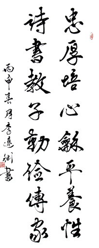 自幼受外祖父刘玉德(老教师)影响,造就自幼酷爱书法,40年来临池不辍,曾先后临习汉隶、曹全碑、礼器和乙瑛碑;钟繇、颜欧柳赵、褚遂良、文征明、二王(王羲之、王献之)、唐寅等世代名帖。曾蒙欧阳中石、顾亚龙、张建会先生书法指导,拜读孙勤三、刘彬昌等书法导师的手把手指导,多次参加省书协书法培训班,受到邹方臣、胡宗江等书法导师的亲身传教,经个人刻苦练习,不懈努力,作品力求一气呵成,一笔到位,流畅大气。深受书法艺术界专家、学者、同仁的高度赞誉,书法作品被海内外领导及友人雅存。
