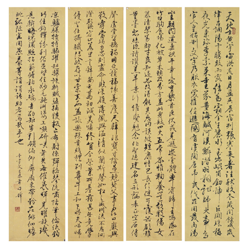 刁锋作品《 行书千字文局部》规格: 100x26cmx4
