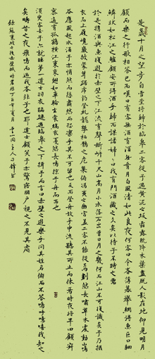 自幼年6岁始便酷爱书法,且天资聪慧,融汇贯通。不论春夏秋冬或严寒酷署,几十年如一日,始终坚持临池不辍,孜孜以求。遍临二王及颜、柳、欧、赵等法帖从不间断。虚心向著名书法家及同道高手学习借鉴,特别近年来随着书法眼光的视野不断开拓,欣赏水平的迅速提高,技法掌控的突飞猛进,随即对唐晋前后诸家高古拙秀之上翰法书,产生浓厚兴趣和临习欲望,尤其对米芾、赵孟頫及智永和尚之书帖,更是情有独钟,倍爱有加,痴心研读!在融合各家之长,创作具有自己独特风格的小楷长卷,更使书法爱好者与收藏者对此精品趋之若鹜,惠索定制创作的长卷,由于求者众多,作品数量有限,所以时至半年往往都得不到满足!供不应求已成缺憾之事!