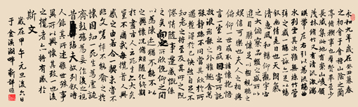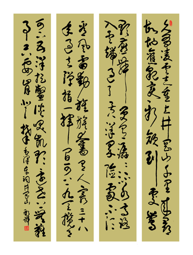 2013年,同步进行且歌且书,壁书201.3米狂草书法长卷,申请世界吉尼斯纪录。被授予“艺坛领袖人物”荣誉称号。