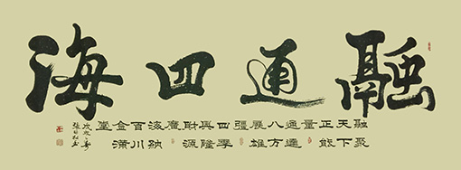 张琮松自幼酷爱书法艺术,更热爱祖国的大好河山,曾游遍大江南北,他的作品折射出雪山的恢宏、小溪的潺潺,松涛的回声,字里行间都传递出“精气神”,让人叹为观止。他辗转于四川、重庆、杭州、扬州、桂林、广州及北京等地拜师学艺,广集博采。先后得到了著名书法艺术大师王遐举、启功、刘炳森等恩师的指点和教诲。他除了娴熟掌握传统的书法技巧外,还练就了独特的指书、拳书艺术。篆书、隶书、楷书、行书、草书、榜书、诸体皆达到颇深造诣,犹其隶书已达到出神入化,独步书坛的境界。博采众长,独辟蹊径,神韵十足,自成一体。篆书、隶书端庄秀丽,凝重典雅,行草豪迈奔放、气势磅礴。深得同道友人喜爱,被誉为“天地一指”、“深山飞俊鸟”,著名书法家等美誉。张琮松经过多年锲而不舍的努力,先后出版多本书法集及字帖,取得的成就及代表作如下:
