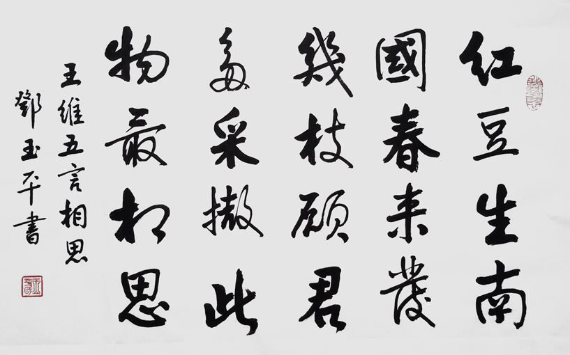 邓玉平作品《红豆生南国,春来发几枝。愿君多采撷,此物最相思。》
