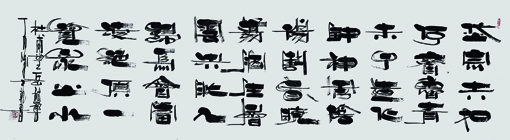 廉老师书法作品,字体变化、结构安排、严而舒,笔画雅而俊,悦目怡神。以隶为基,依托隶书严谨的法度和端庄的仪风,创作出自己的独特风格。其书法远观朴实、厚重,近观儒雅自然、飘逸灵动。显示出娴熟的艺术功力。