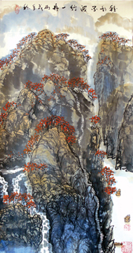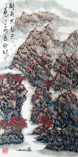 刘玮老师从事书画艺术40多年,每幅作品都充满郁勃气象,画面中斑斓五彩的交错似乎充盈了作者对生命生活的热爱,对自然万物的致敬,用自己的情怀勾勒出山川脉搏“跳动”的旋律,再把这种激荡着生命活力的画意展现在大众面前,传达一种豪迈性情,坚实力量。