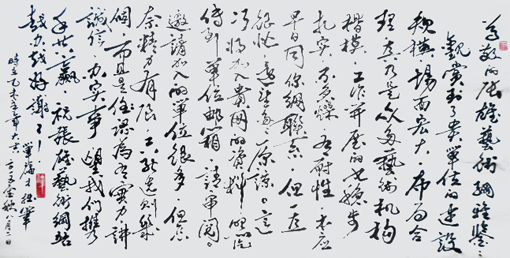 曾参加全国、国外大展,在韩国、加拿大、美国、巴西、日本、新加坡展出、获奖,并被收藏。作品风格独特,雅俗共赏。书法作品师古不泥,在继承传统中创新,结构笔法极具个性风貌,形成独家体系。其个人传略、作品入选《中国当代艺术界名人录》,《中国当代书画名家墨宝指收藏指南》,《世界当代著名书画家真迹博览大典》,庆祝联合国总部成立70周年《纽约书画展作品专集》等多部典籍。荣获“中国最具收藏价值书画家”,“共和国诗书画功勋奖”等多项荣誉称号。现为国际美术家联合会会员,中国国际画院副院长,宋庄国际书画院终身院长、中国现代民族艺术家书画艺术家协会副主席等职务。