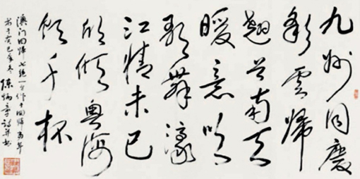 陈炳章作品《澳门回归》九州同庆彩云归,翘首南天暖意吹。歌舞濠江情未已,欣倾粤海饮千杯。(此作品参加“澳门回归祖国15周年邀请赛”获“金莲花艺术奖”,“诗文类创作金奖“。)