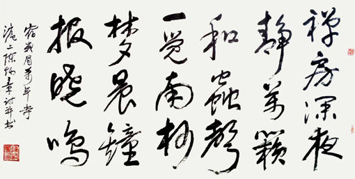陈炳章作品《宿峨眉万年寺》禅房深夜静,万籁和虫声。一觉南柯梦,晨钟报晓鸣。此作品被上海东林寺收藏