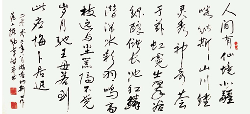 陈炳章作品《游喀纳斯》人间有仙境,北疆喀纳斯。山川钟灵秀,神奇荟于兹。虹霓出翠谷,绿酿储长池。红磷潜深水,彩羽鸣高枝。远与尘嚣隔,不觉岁月驰。王母若到此,应悔卜居迟。 作品“游喀纳斯”是2002年秋自新疆返沪后吟成。红鳞,喀纳斯河大红鱼哲罗鲑,传说颇神奇,曾吸引中外众多探险者。