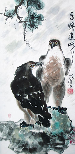作为画家,他深知自己的使命与责任,他以现代人的自觉意识认识到生命形式的更替,艺术的样式,风格不能不变。生命形态的变化,决定了艺术形式,风格的转换。因此,望胡振汉先生引领的中国传统文化又不断探寻属于自己的心灵的笔墨。他走出了某些传统局限,正在向新的艺术高峰攀登。我们相信,胡振汉先生的出众禀赋,坚毅德品,以及对书画艺术的不辍修习将会在中国书画艺术史上谱写更为华彩的诗篇