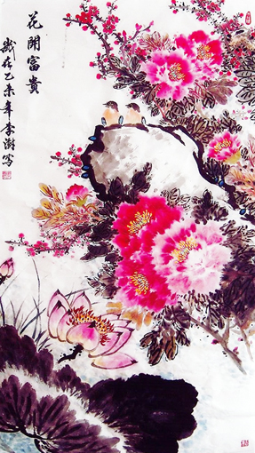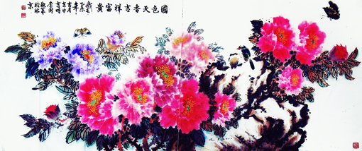 《国色天香 吉祥富贵》国画240cmX120cm 2015年