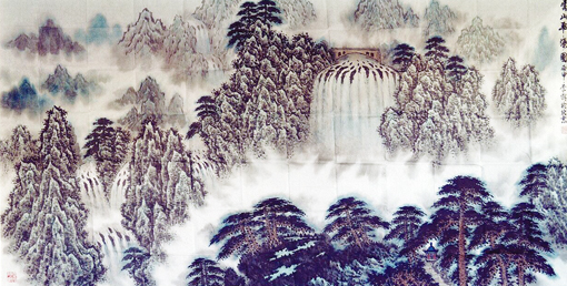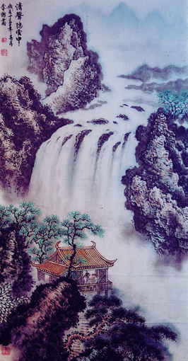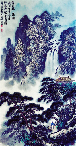 《云山飞瀑图》国画 136cmX68cm 2017年