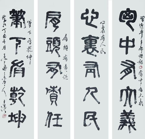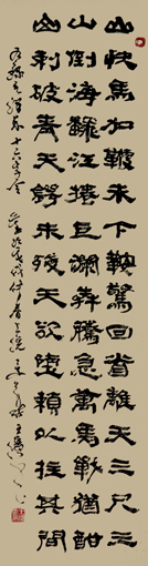 初识王滨先生,会被他温文尔雅的气质所吸引,俊声朗朗,侃侃而谈。多年来在致力于书法教学工作的同时,还热心于公益事业教学和辅导青少年书法。本人作品工隶兼其他诸体及篆刻。书作曾多次在全国书法大赛上获奖,并被国家博物馆美术馆收藏,近20年来从事少年书法教学,取得了较丰硕的成果。培养了一大批书法爱好者,并多次荣获全国青少年书法大赛组委会颁发的团体特等奖、书法教学名师奖及多项荣誉奖牌。