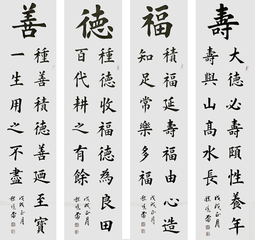 嵇境雷作品《善 德 福 寿》138x35x4