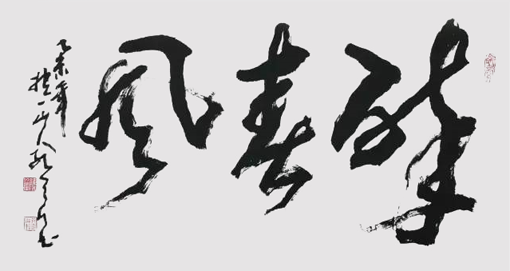 书法诸体皆擅,尤以草书见长。书法作品疏密成章,稳健与险峻相济,飞动与宁静并存,无声而有音乐之旋律,无色而有色彩之斑斓。