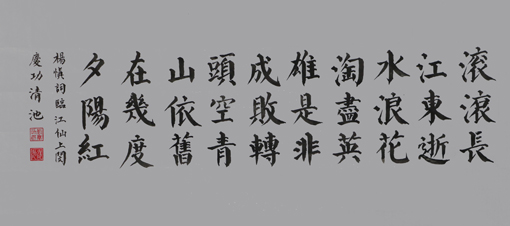 沉厚端稳的“刘氏书风”虽已在业界取得相当成就,但这并不是刘庆功的最终理想。将来对书艺生涯的追求,他仅仅只是想把字写好,把心修好,把下一代教育好,就是这么简单。或许也正是因为有这样一份淡然的心境,才让刘庆功书法中“正大气象”的韵致没有成为一个空洞的形容词。而是一种内涵的气势,是客观静察的通透灵思,是心胸博大的包容,更是修养和智慧的积淀与升华。书法家刘庆功的追求,更不是那些看似具体的空相,而是可以超越这些物象本身的,承托起有着历史厚重感的,能表达生命深沉之弘壮的载体。刘庆功的虚怀谦逊,让观者感受到一种深沉的内蕴,并期待他未来更为臻善作品的问世!