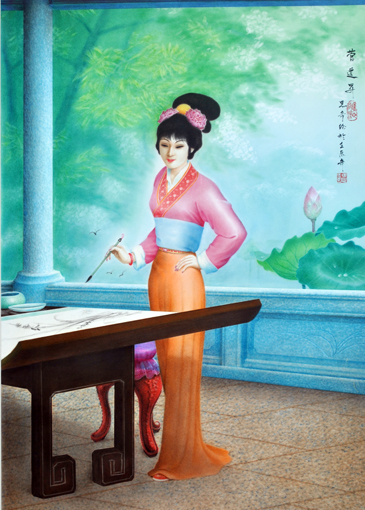 现在致力研究、继承危于失传,濒于消亡的中国传统月份牌国画,为挽救这一世界的、民族的传统画种,舍去平常研创的其它绘画门类,定位这一冷门,将研究项目转向这一艰难的工程,用毕生精力使其沉睡了半个多世纪的艺术流派得以新生。在传承中创新,融合西画之风,创新传统艺术。目下专创月份牌国画中国历代才女图--昭君……蔡琰……宋庆龄……,意在弘扬巾帼、放歌史实。