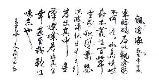 研习书画,根植传统、积厚薄发、努力创新,尤其中年之后得邕行楷之法,使其书品大气磅礴,雄强迺逸,潇洒灵动,气象万千,极具阳刚之艺术魅力,凭借自已人格德行、豪谦敦厚、善行修为。学识专注和精湛技艺、志在书画相辅,走雅俗共赏的之艺道,独创精神得到专家好评,同道称颂,群众喜爱,作品自上世纪八十年代始。书画在国际国内大型书赛参展90余次,先名荣获14金3银9铜10精品佳绩,有的被刊发.或勒石.或收颟藏,声播海內外,而以行草最为见长。
