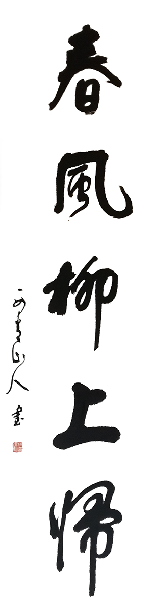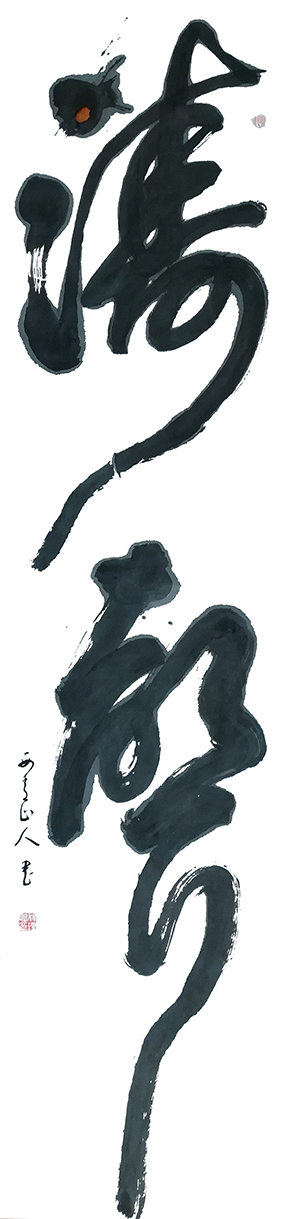 “金鸡报晓”四个字,朴茂苍浑,古风古韵,不粗犷但豪气万丈,不飘逸但俊美十足;“道法自然”四个字,刚劲柔顺相济,遒劲中孕育灵气,秀润中饱含骨力;其用笔往往中侧兼施,粗细变化,体势劲媚,超尘脱俗,赏之悦目,品之悦心,令人耳目一新。林理明先生在书法界造诣颇丰,获奖无数,但他始终坚持脚踏实地,潜心研究书法文化,潜心创作,获得业内外人士称赞。
