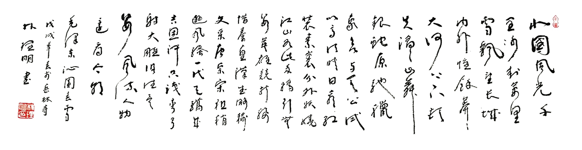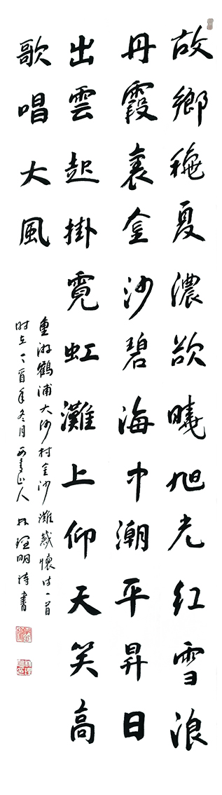 人格魅力、艺术情操、卓著成就等构筑了林理明先生的才情风貌,也确立了他的创作风范。先生的书法气象,一如他的处世态度:勤勉智臻,忠于作品。林先生的书法与诗词创作皆是其不断实践的结果,书法个人特色浓厚,苍劲凝重不失隽永,端庄方正不是遒劲,严正而不刻板,凝重而有韵致,耐人琢磨;诗词创作写出了他的心境,凸显了他的文学素养与艺术品格,雄浑大气,字字珠玑,精彩万分。这便是林理明,一位德艺双馨的书法家、诗词家。祝愿先生在未来的日子里创作出更多的优秀作品,乘风破浪,永攀艺术高峰。