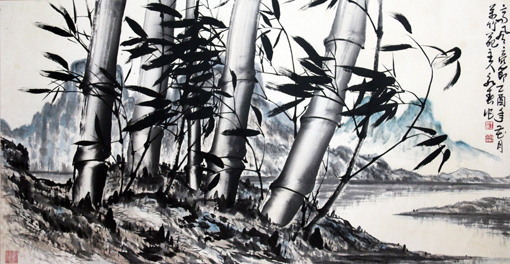 竹子在中国的文化中,是有骨气、有气节、坚贞的象征,同样也象征着生命的弹性、精神的真理,历代多少仁人志士常赞美竹、咏竹、画竹、写竹,它们有着虚心亮节、潇洒挺拔的君子风度,世人常用竹来寄托自己的情感或以竹的品质为自己品格的发展方向。观其画竹,以书入画,且常以水墨表现竹的形象与气韵,其娴熟的笔触、流动的情韵、形态各异的构图和师法自然而不断创新的精神跃然纸上,其一枝一干,一节一叶,疏密有致,虚实相间,气韵非凡,表达了不同意境。给人以不同的审美视觉,令人击节赞叹。既有水墨画浓淡得体、黑白相间、干湿相济、以墨取气、以墨取韵的润泽华滋之美,又有王永春先生对竹子沐雨栉风、顶天立地精神的赞美以及对竹子正直君子气质的理解, 做到了人画竹,竹化人的境界,观之令人心旷神怡。