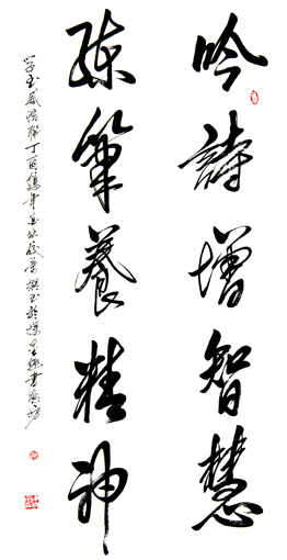 本人在三位母舅石镜泉、石香泉、石雨泉老师的熏陶下,从小痴迷书法,7岁临摹柳公权、颜真卿的楷书,后又学练王羲之的天下第一行书《兰亭序》。无论严寒酷暑,冬去春来总是临池不辍。从不放弃间断。坚持做到“四多”:多看书学理论,多请教学经验,多临帖学技巧,多钻研学创新。还挤出时间从报刊上剪贴书画作品21本,收集古今名家精品力作25000幅。