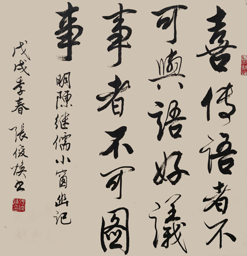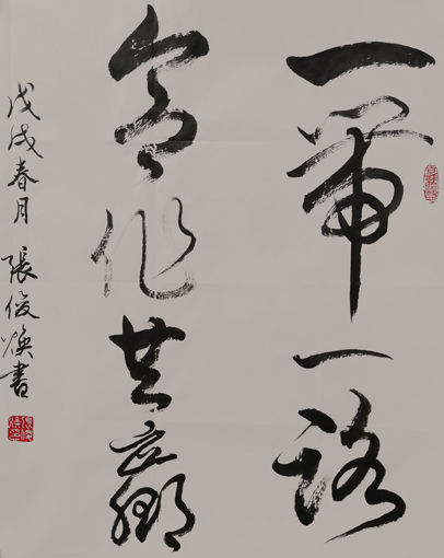 张俊焕从小爱好书法,数十年来坚持临摹练习,从传统书法入手,初学颜、柳体,兼修隶书,后崇王羲之行草书。其倾心研修书法,以继承和发扬传统书法为目的。由于长期坚持,习书已成为日常必不可少的重要内容。他博采众长,锲而不舍,黾勉创新,自成一家。他的书法字如其人,正气凛然,严守法度,中规中矩,平和淡雅,笔法精到,线条遒劲有力,结字丰满圆润,温柔敦厚,儒雅沉静,沉稳中不失灵动,飘逸中隐含雄强。布局讲究,平稳流畅,疏密有致,内涵深邃。作品给人以高雅、清新、耐看、朝气蓬勃、赏心悦目之感。著名美术评论家邵大箴先生称其作品“古奥清奇,醇厚率逸。”