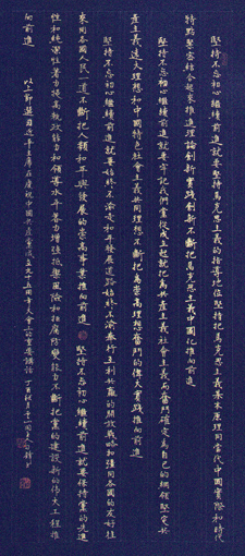 自幼年6岁始便酷爱书法,且天资聪慧,融汇贯通。不论春夏秋冬或严寒酷署,几十年如一日,始终坚持临池不辍,孜孜以求。遍临二王及颜、柳、欧、赵等法帖从不间断。虚心向著名书法家及同道高手学习借鉴,特别近年来随着书法眼光的视野不断开拓,欣赏水平的迅速提高,技法掌控的突飞猛进,随即对唐晋前后诸家高古拙秀之上翰法书,产生浓厚兴趣和临习欲望,尤其对米芾、赵孟頫及智永和尚之书帖,更是情有独钟,倍爱有加,痴心研读!在融合各家之长,创作具有自己独特风格的小楷长卷,更使书法爱好者与收藏者对此精品趋之若鹜,惠索定制创作的长卷,由于求者众多,作品数量有限,所以时至半年往往都得不到满足!供不应求已成缺憾之事!
