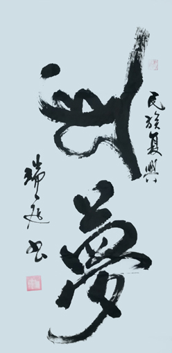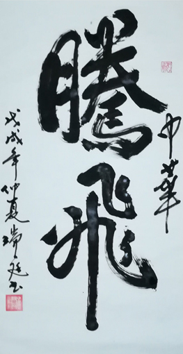 书法作品参加全国性、国际性大赛获等级奖多次。1995年创作的书画龙获第三届世界华人艺术大展特别奖,2001年创作的书法作品《松以劲延年》入选国粹奖,2003年书法作品“翰飞墨舞人杰”获中华国宝奖等。2015年作品入选《国家艺术最具投资十六位实力派艺术家》,2015年入选《非物质文化遗产传承人物》,2015年入选《全国德艺双馨艺术家》荣誉称号,书法作品被国内外多家馆院碑林和友人收藏,作品及传略被选入《百年经典--中国书法全集》《国粹艺术大典》《中华国宝书画艺术大典》《中国书画名家名作选集》《中国当代名人录》《盛世大匠》等多部书画集。其书风质朴、爽朗、清健、多姿。潇洒淋漓,别具风神,书作气势豪放,行散神聚,气质不凡,自成面貌。特别是榜书将画里融进书法中,书中有画,画中有书,情境自然,引人遐想。它的魅力在于气韵通畅,在于雄浑老辣,在于寄情的点画之间,这正迎合了中国书法的审美要求。因而有强大的生命力,有丰富的哲学内涵,有完美的自然情味。其作品充满勃勃生机,充满作者对自然的感悟与生命的律动,充满了对美好未来的期待与不可动摇的人生信念。她的作品表现了一种实实在在的作风,是一种充实的、不造作的淳朴的自然风格。钟瑞庭说,书法是汉字的书写艺术,是中国特有的一种传统艺术,汉文字是劳动人民劳动开始以图文记事,经过几千年的发展,演变成当今的文字,汉字在漫长的演变发展的历史长河中,一方面起着思想交流、文化继承等重要的社会作用,另一方面它本身又形成了一种独特的造型艺术。中国人是龙的传人,钟瑞庭开始用创意书法诠释“龙”。1995年,他创作的“书画龙”,龙须飘逸,神龙腾飞,作品以其遒勁、生动、自然的特点获得第三届世界华人艺术大展特别金奖。中国人推崇寿文化,钟瑞庭将“寿”字创意创新,分别象形出男女寿星,栩栩如生,特性鲜明。中国喜十二生肖为创作题材。钟瑞庭创作的十二生肖创意书法,再现了生肖特征,在香港展出时博得众多港人的喜爱。