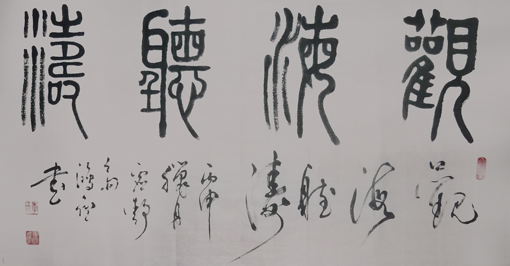 在中国五千年有系统文字记载的历史中,中国书法艺术无疑起到了承载历史,传承历史文化的不可估量的巨大作用。书法是汉字的书写艺术,是中华民族传统文化的瑰宝,承载着中华文化的深厚内蕴,与中华民族的内在生命精神血脉相连,融为一体。书法不仅仅是“技”,是“艺”,更是“道”,它与中国文化相表里,是我国几千年文化的结晶,有着深厚的文化内涵和社会价值。在“中国书法”被列入人类非物质文化遗产之后,更受到了全面关注。在此同时季先生“以笔墨为伴,索翰墨精华”作为一直以来的理想和追求,他淡泊而平常的生活着,专注而无争的创作着,在看似简单的状态中却能孕育出无限能量。季先生对中国文化的专注与执着,给笔者留下了深刻的印象,这也是他能在承于古法中顺其自然的成于自我的德品之修。也更让期待他的人相信其艺术必将于百尺竿头处更臻完美。