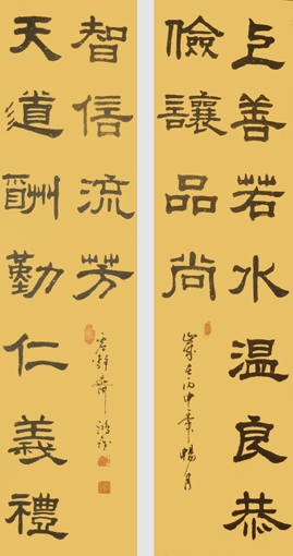 季鸿雁书法作品 《上善若水》 四尺龙门对