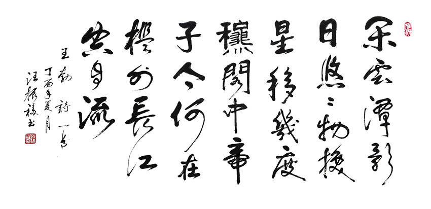 汪先生的书法古朴典雅,又不失时代的个性,静谧绝尘而又饱含激情,结体内敛外放,拙而不怪,秀美中透着俊朗,那种美是润物细无声的美,不是张扬的美,是永不褪色的美。